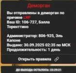 Photo 2025 09 30 03 53 47 получила данное наказание из за ошибки сервера , когда слишком много людей у меня проседает фпс тем самым стопит картинку и все ничего делать не могу . Я пыталась зайти 2 раза,но происходила та же ситуация. И начала делать проверку файлов,чтоб ушли эти фризы итд. И захожу уже откинули на 24ч . Если есть возможность как то смягчить данное наказание смягчите пожалуйста.