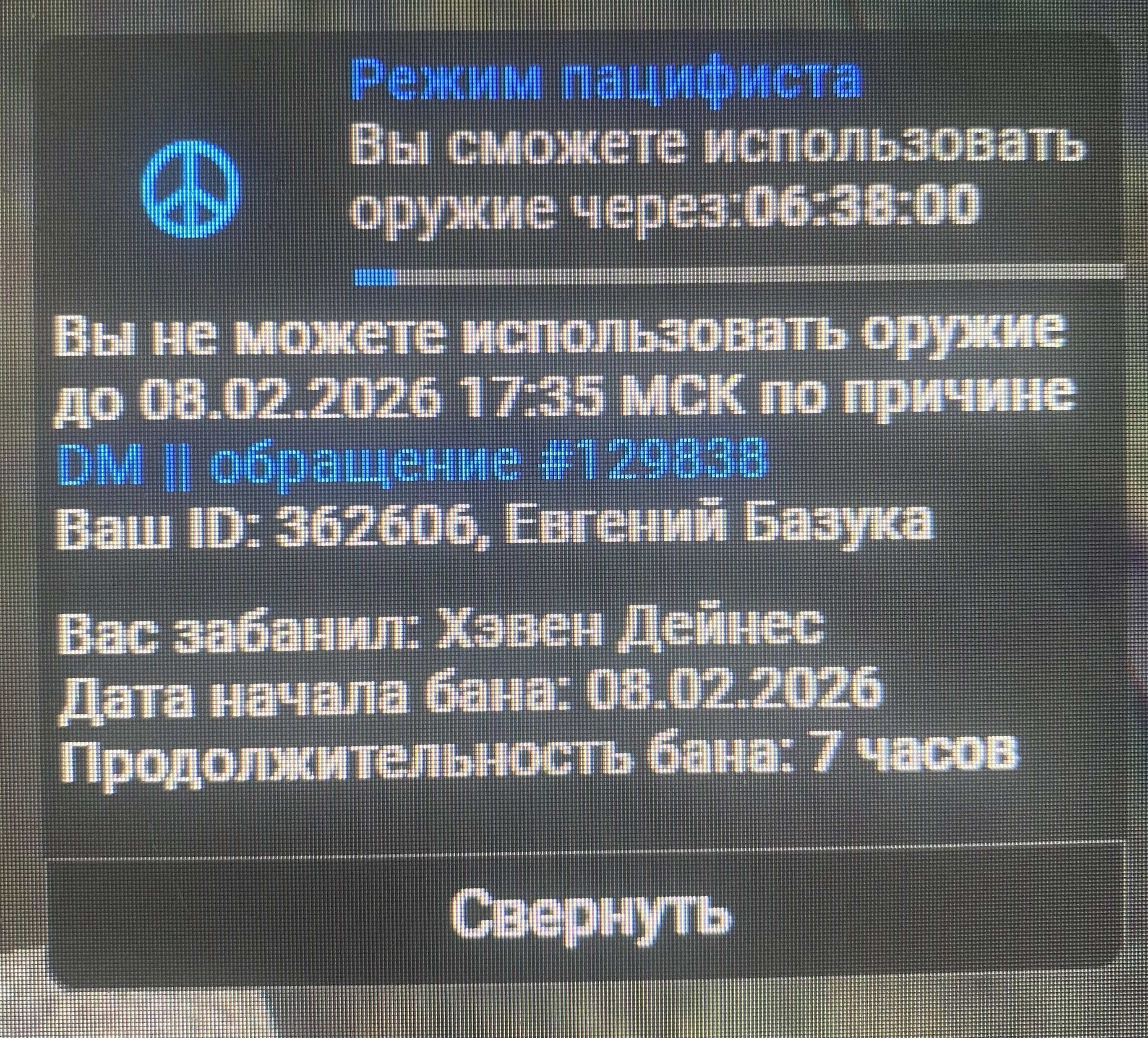 - Скриншот наказания