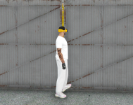 Мускулистый, с грубым выражением лица. На лице шрамы, следы прошлых драках. Обычно носит старую, порванную одежду, иногда — тюремную форму или что-то похожее. Глаза холодные, проницательные, иногда с выражением недоверия.