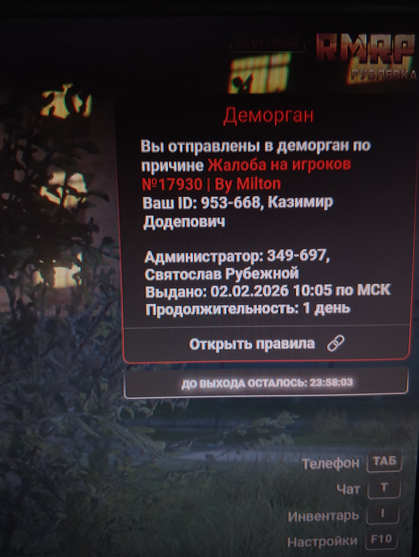 Захожу и и вижу у себя бан за не существующую жб, есть догадки, в прошлый раз когда играл мне один тип с пеною рта втирал что у него есть знакомый админ и по его просьбе меня откинут